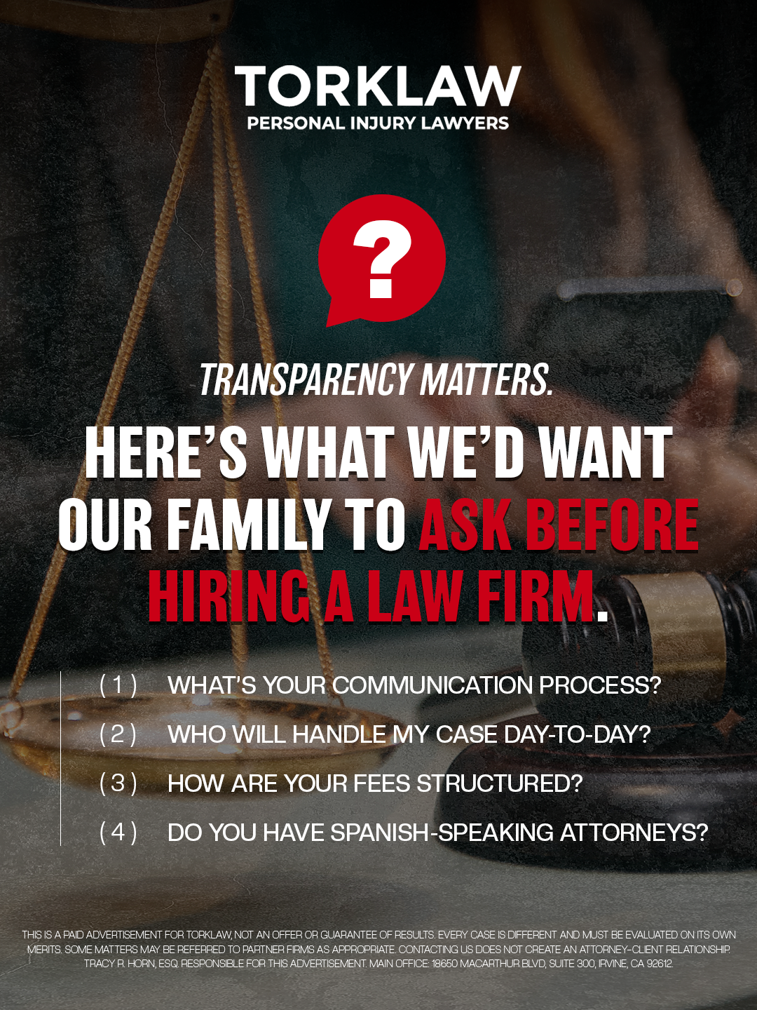 Description: TORKLAW is a client-focused personal injury law firm dedicated to fighting for maximum compensation and justice for individuals harmed by negligence and wrongful conduct.